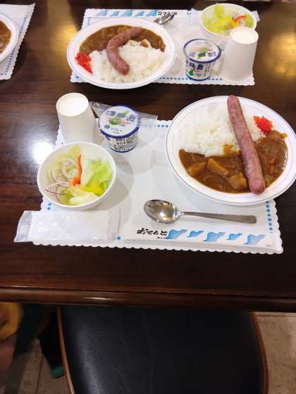 ファーマーズキッチンで昼食。カレーです。大きなウインナーがのっています。