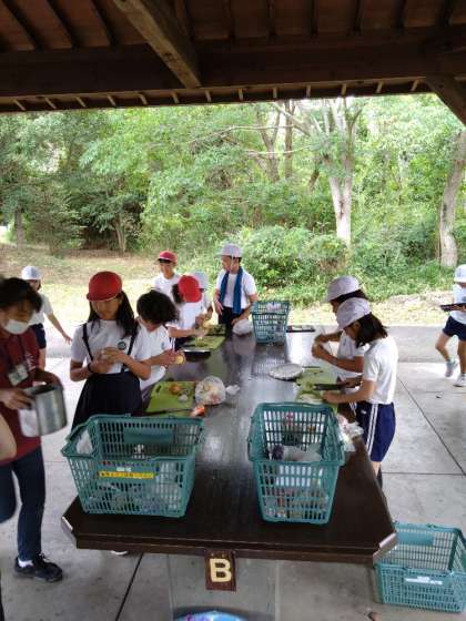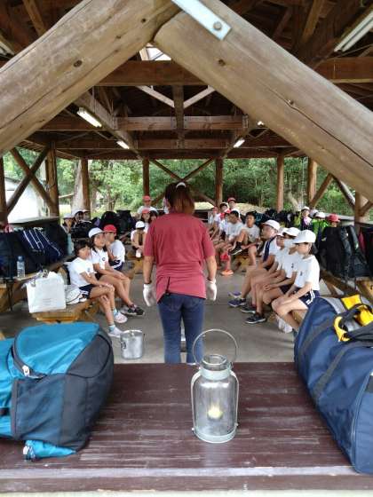 パラやんからカレー作りの説明を聞いてスタートです。みんなで起こした火はキャンドルに。