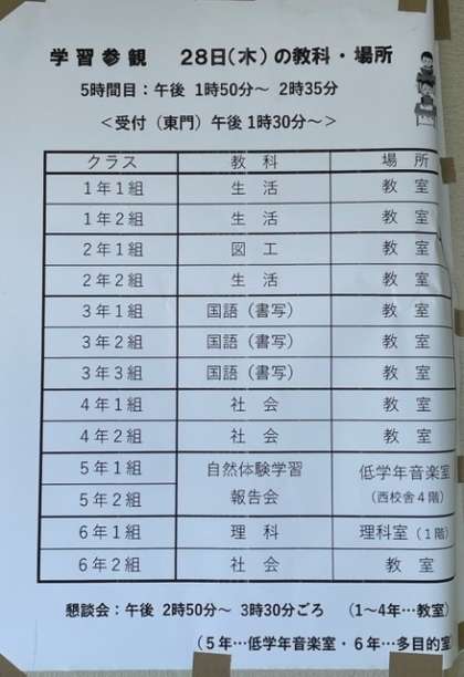 本日は、5時間目、学習参観