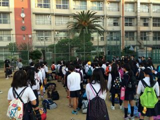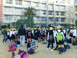 6年生103名、午前6時45分、広島に向けて出発しました。