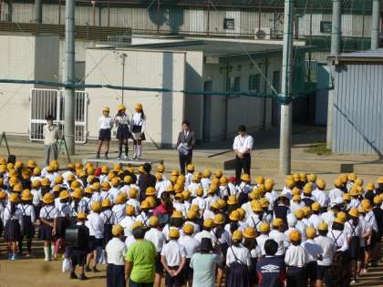 保健給食委員会の児童が、9月清潔・給食週間調べの発表をしました。