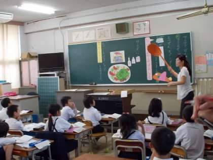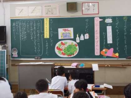 「サラダ」「飛行機」「スプーン」などの教具で、楽しい授業が展開されました。