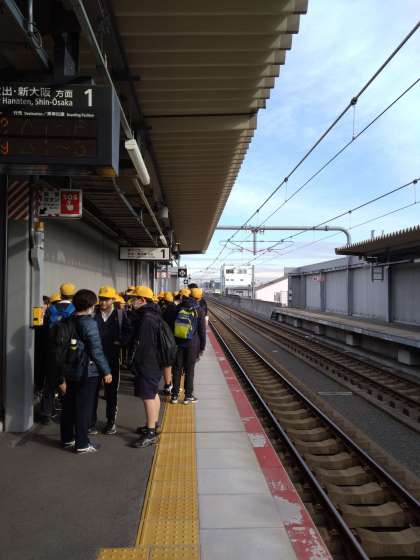 衣摺加美北駅で電車待ち、高井田中央駅から地下鉄に乗り換え、森ノ宮駅に向かいます。