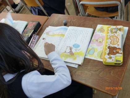 林で会った大男の様子を読み取ってきつねや牛の気持ちを想像し、音読をしました。