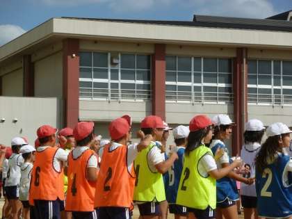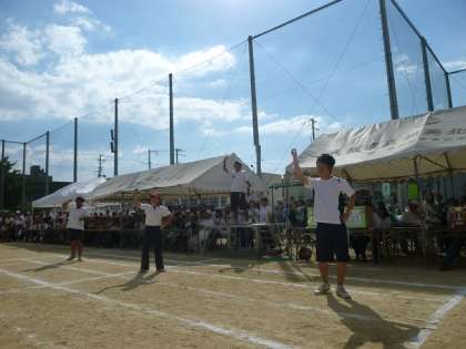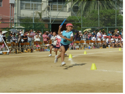 5年生のリレーでは、サプライズがありました。リレーの入場の後半、子ども達と先生が一緒に踊り出しました。会場は、大盛り上がりでした。踊りで緊張感をとった子ども達は、その後、のびのびとリレーに取り組んでいました。