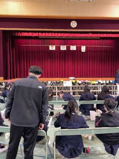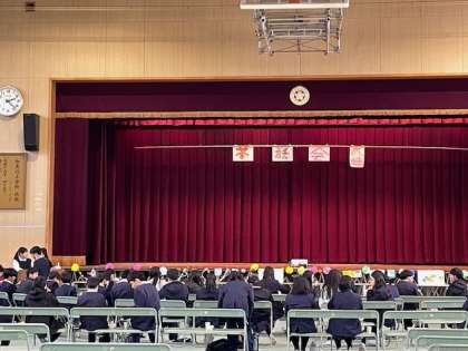 講堂にみんなで集まって