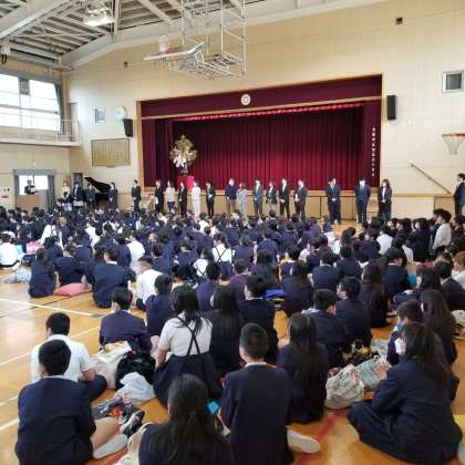 新しく着任された教職員の紹介、そして、異動された教職員の紹介を行いました。