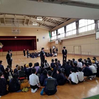 その後、講堂や運動場に分かれて、クラス分けを行いました。