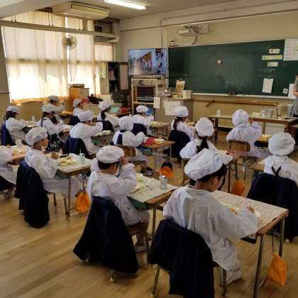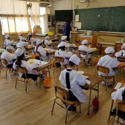 1年生、給食をしっかり食べています。