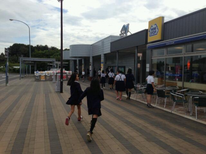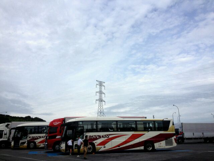 サービスエリアでトイレ休憩。曇り空が広がっています。幸いまだ雨は降っていません。中村先生が作ったてるてる坊主が頑張ってくれているようです。