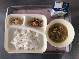 19日「焼きとり、みそ汁・もやしのゆずの香あえ・ごはん・牛乳」です。