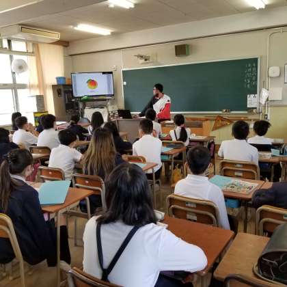 1時間目 加美中学校より英語を教えにきていただきました。