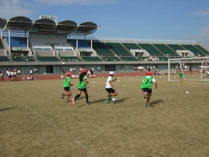 午前中は、長居第2陸上競技場で、サッカー・ドッジボールをしました。