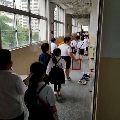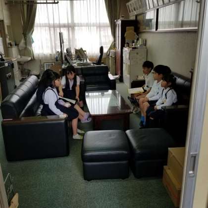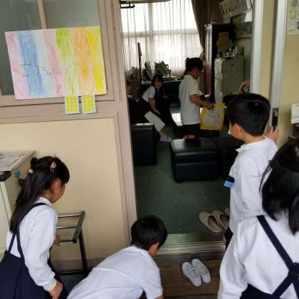 昨日の打ち合わせをもとに、今日は学校探検の本番。