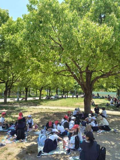 その後、フリスビー、縄跳び、鬼ごっこ、芝生広場を使ってしっかり遊びました