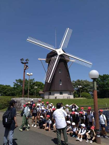 国際庭園を通り、風車小屋の前で記念撮影しました。