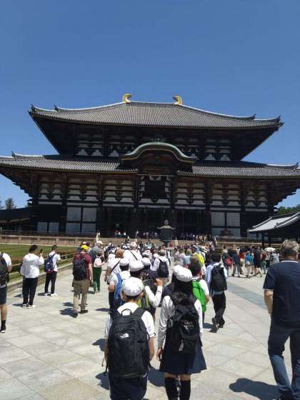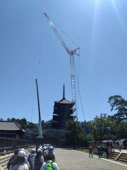 奈良駅から奈良公園へ、興福寺五重塔は修復工事中。