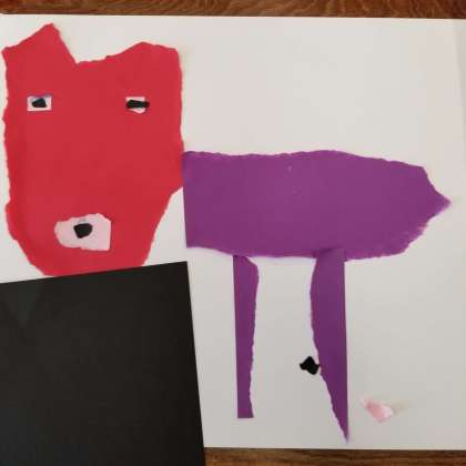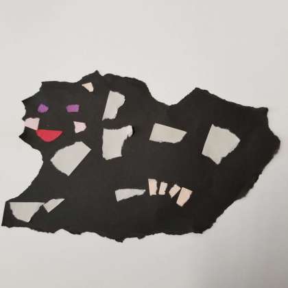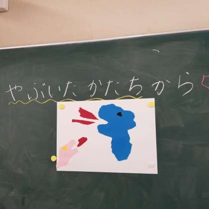 画用紙をやぶいたかたちをつなぎ合わせ、表現しています。