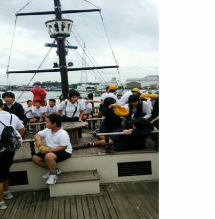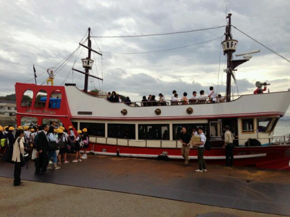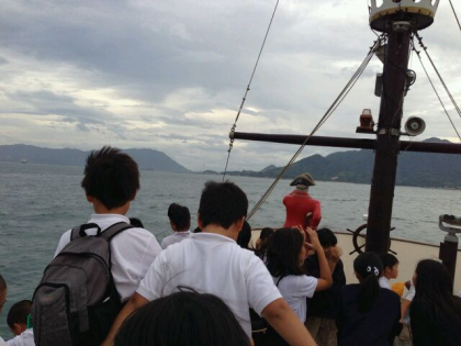 今からフェリーに乗り込みます。みんな元気です。雨もなんとか持ちこたえています。