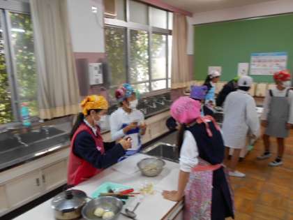 家庭科の調理実習で「粉ふきいも」を作りました。