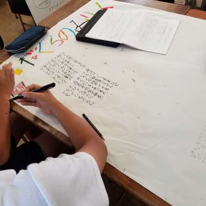 グループごとにテーマを決め、調べたことをまとめています。