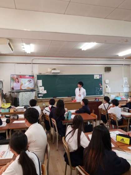ロッテの方にお越しいただき、キャリア教育の一環として「ロッテノベーション」についてお話をしていただきました。