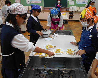皮をむいて、芽をとり、湯でて、粉ふきいもが出来上がりました。