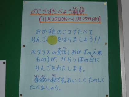「のこさずたべよう」の取り組みを11月25日〜11月27日までします。