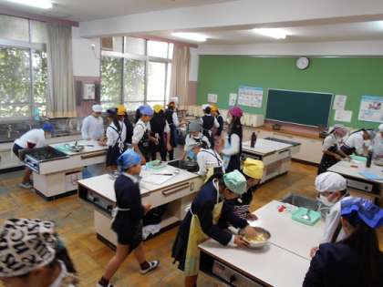 11月20日、6年生の最後のクラスが調理実習をし、「粉ふきいも」を作りました。
