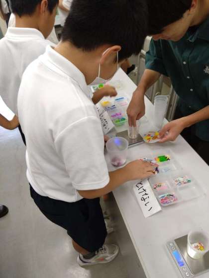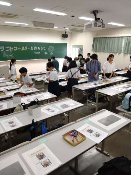 プラごみを使ったプラスチックコースターの工作を大学院生の方々に教えていただきました。また、昼食後はレジンとプラごみでアクセサリも製作しました。ご指導いただいたみなさんありがとうございました。