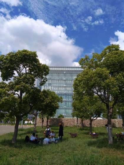 人と防災未来センター横の公園の日陰でお弁当を食べました。今から淡路島に向かいます。