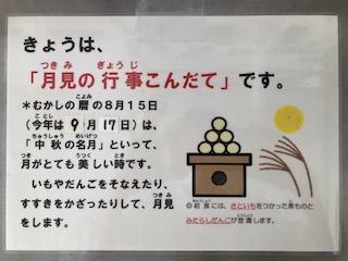 今日はさといもとだんごを使った月見の行事献立です。今年の十五夜(中秋の名月)は、