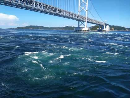福良港からうずしおクルーズ船咸臨丸に乗船しました。鳴門大橋下までクルーズしました。今から淡路サービスエリア経由で学校に向かいます。