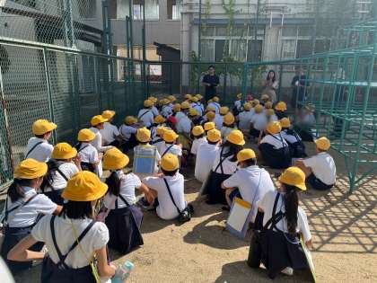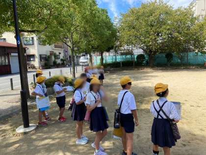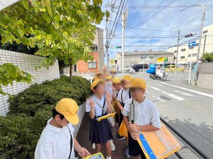 防災学習 自分たちの地域の避難経路を歩いて確かめました。