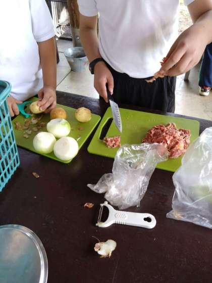 みんなでカレーを作ってます。美味しくてきるかな。
