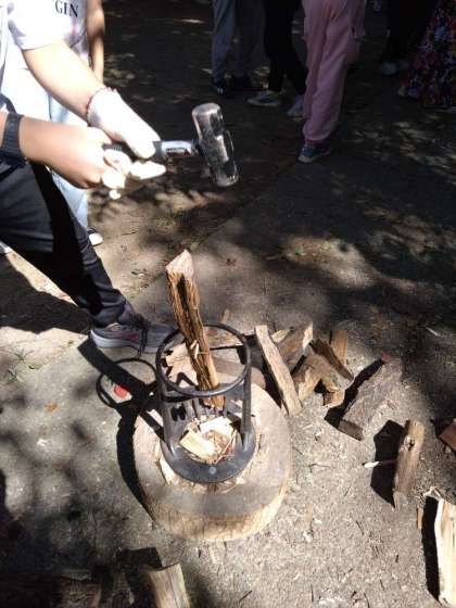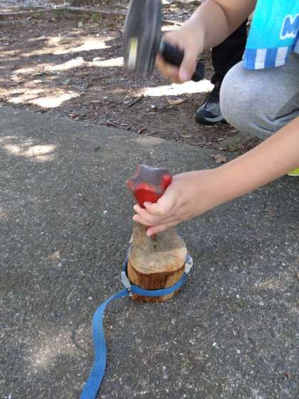 ノコギリ、くさび、クラッカーを使った3種類のまき割りを体験しました。。簡単に割れる木、なかなか切れない木。針葉樹、広葉樹についても学習しました。