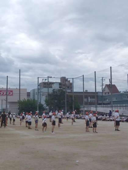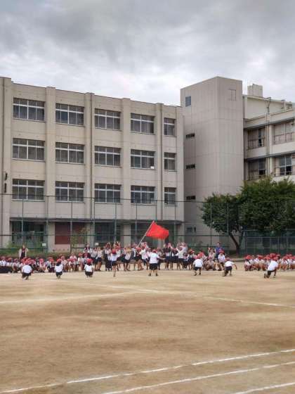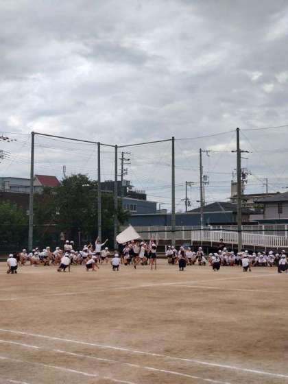 応援団の太鼓に合わせて赤組、白組に分かれて練習しました。