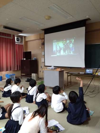 万博国際交流プログラムの一環で、本校5年生とパプアニューギニアのソゲリ小学校4年生がオンラインで交流しました。