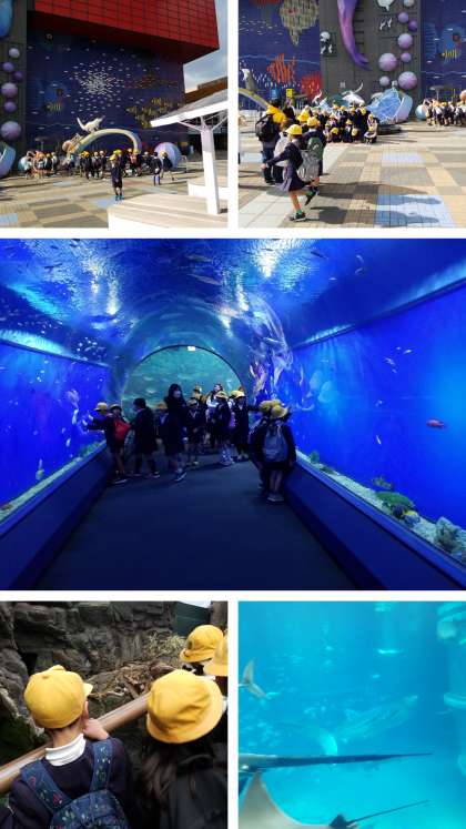 海の生き物を観察したり、海遊館アカデミーでジンベエザメの生態について学びました。