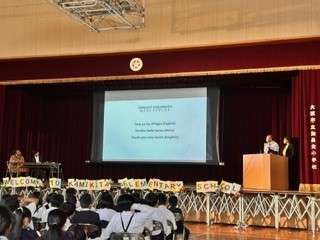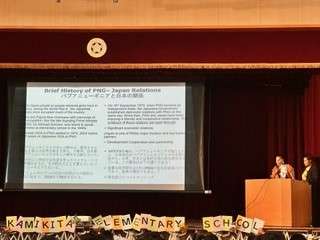 サイモン先生、モイヘ先生に パプアニューギニアの文化等についてお話しいただきました。
