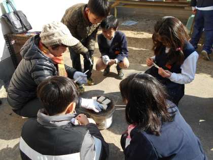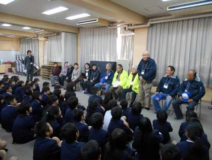 50年ほど前の生活の様子や加美地域の様子を聞きました。話の後には、子どもたちが「どんなおやつを食べたの?」「お年玉ってあったの?」等いろいろな質問が出ました。