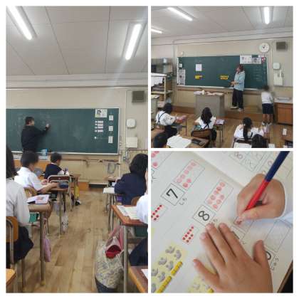 丸の数だけ色をぬったり、ブロックで表したりしながら、読み方や書き方を練習しています。