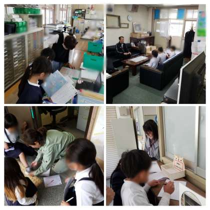 職員室、保健室、管理作業員室などに、どんな仕事をしているのかインタビューしています。