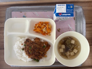 献立は22日「タコライス・とうふともずくのとろり汁・にんじんしりしり風・牛乳」です。