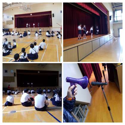 変声マイクを使って何先生の声なのかを当てるクイズです。