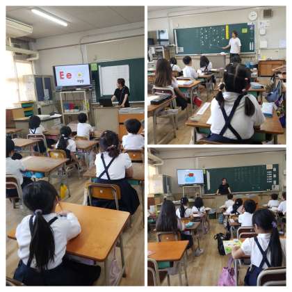 朝の時間 外国語活動 アルファベットの歌を歌ったり、声に出したりしています。