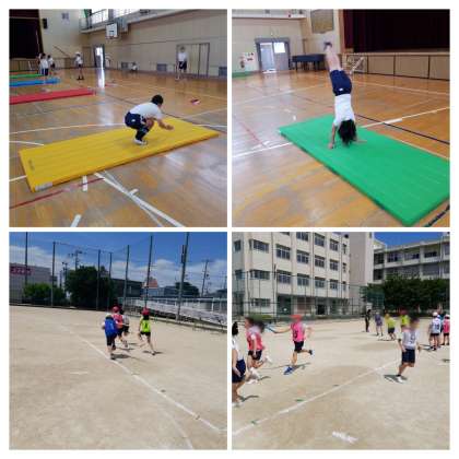 マット運動では互いに補助しあう姿が。