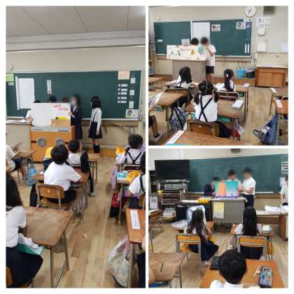 朝の時間に図書員会の児童が、1,2年生に読み聞かせをしています。