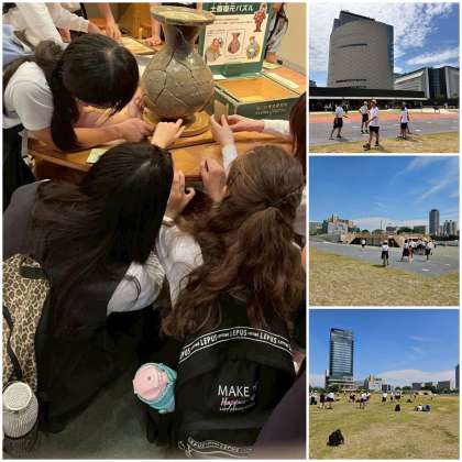 戦争中の天王寺動物園の映像に触れ、身近な場所の悲しい出来事に、平和の大切さについて考える機会を持ちました。見学後、難波宮跡で昼食を食べました。
