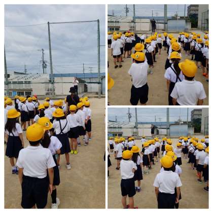 太陽の熱から頭を守るため、また、交通安全のためにも、登下校中はしっかりと黄帽をかぶりましょう。
